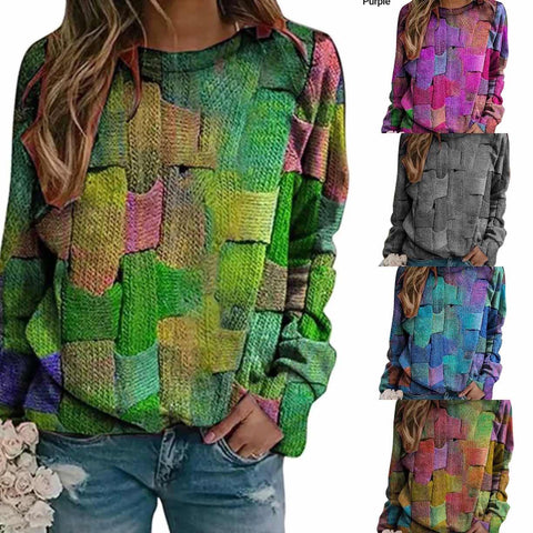 Black Friday 50 % de réduction-T-shirt ample à manches longues imprimé